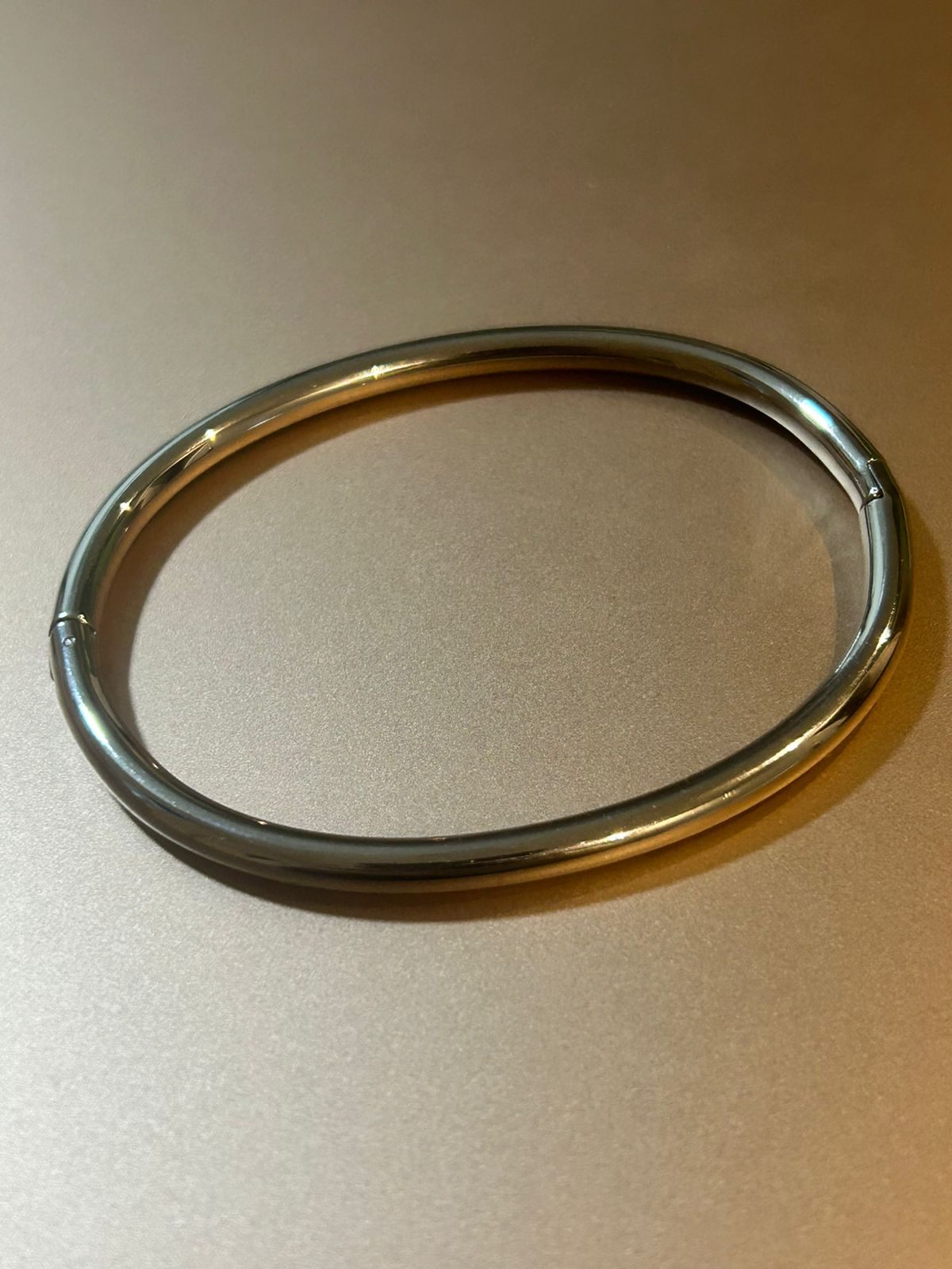 Produzido em aço inoxidável 316L, oferece alta durabilidade, não escurece e mantém seu brilho natural ao longo do tempo. Seu acabamento polido reflete a luz com suavidade, criando um efeito sofisticado e discreto no pulso.